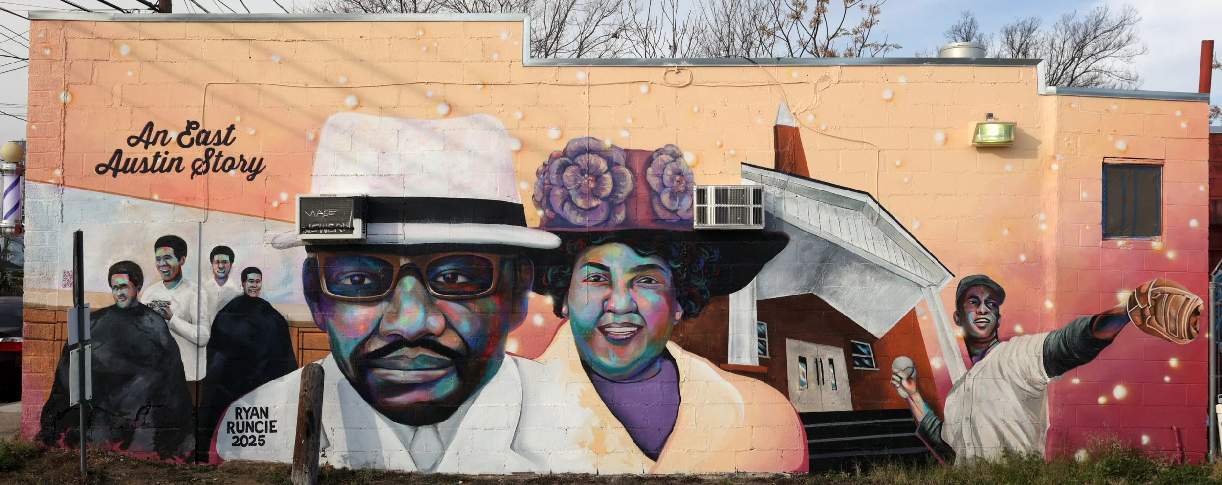 The right side of the wall holds an important narrative for the community and the school. On the left, you see a group of non de-script figures representing the many generations and skills it took to build up the current community we all flourish from. The bookcase pays respects to the first library Mr. Rice implemented into the school.